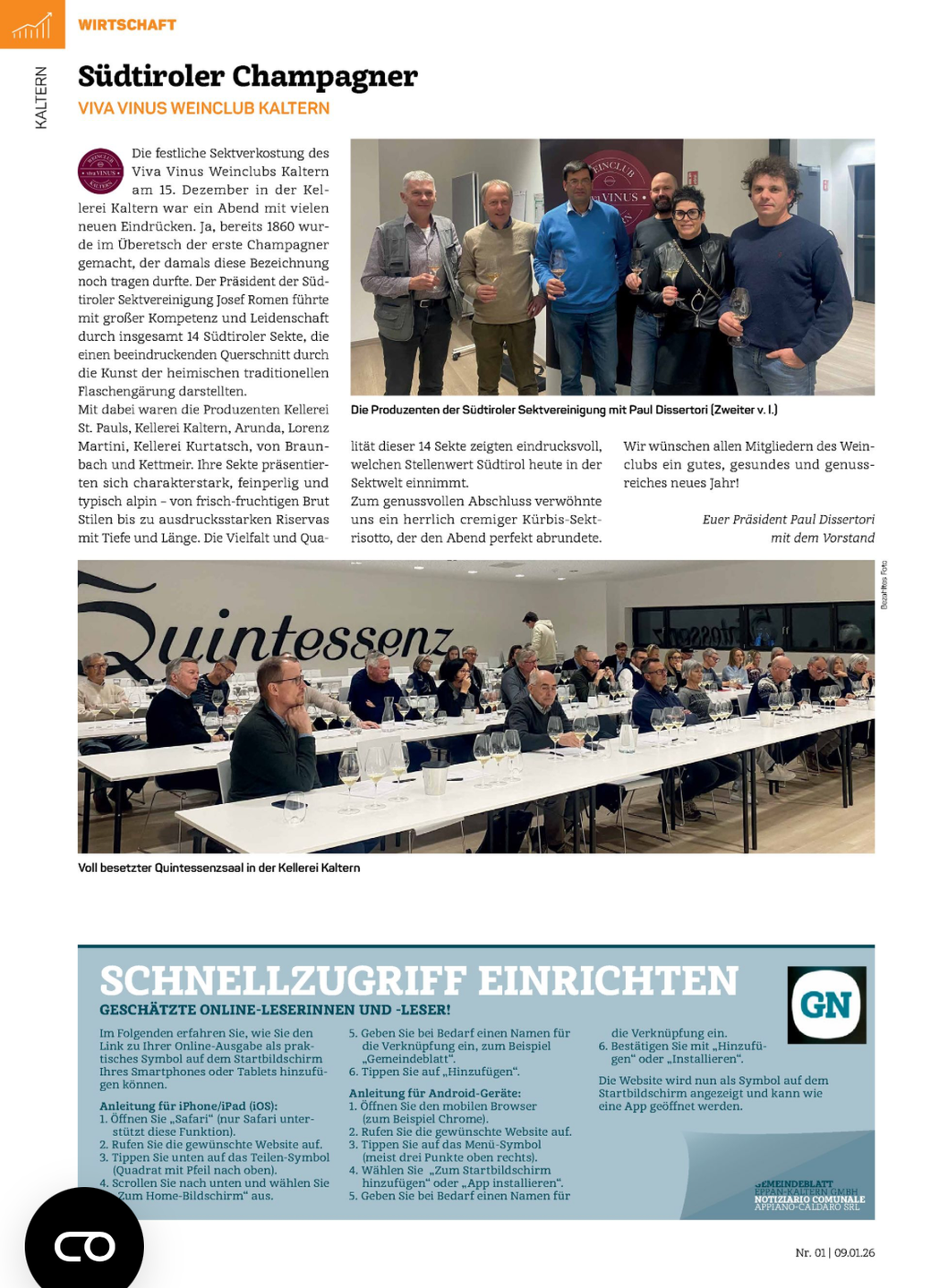 Wir treffen uns am 18:30 in Saal Quintessenz der Kellerei Kaltern.