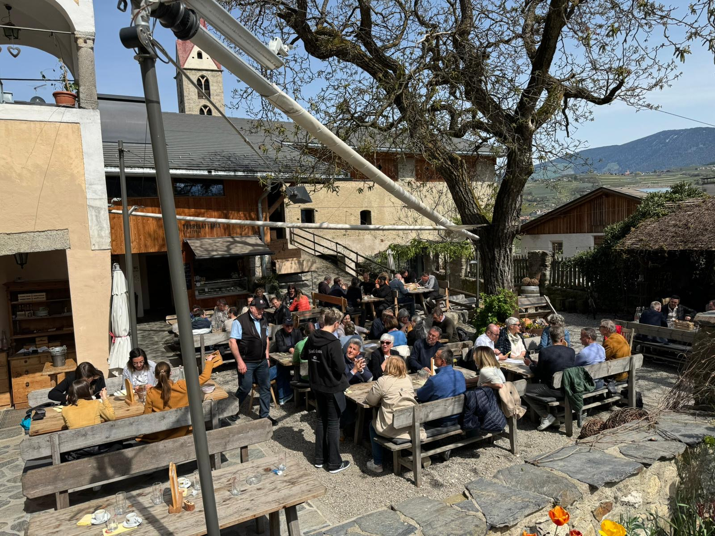Um ca. 16:30 geht es weiter zum nächsten Highlight. Wir fahren nach Völser Ried zum Buschenschank Wassererhof des Christoph Mock. Der vorbildlich sanierte und ausgebaute Bauernhof, der auf das Jahr 1366 zurückgeht, ist nicht nur für seinen Buschenschank mit seiner ausgezeichnete Küche, sondern auch für seine hervorragenden Weine bekannt. Hier werden wir zu Abend essen und die Weine des Gutes verkosten.