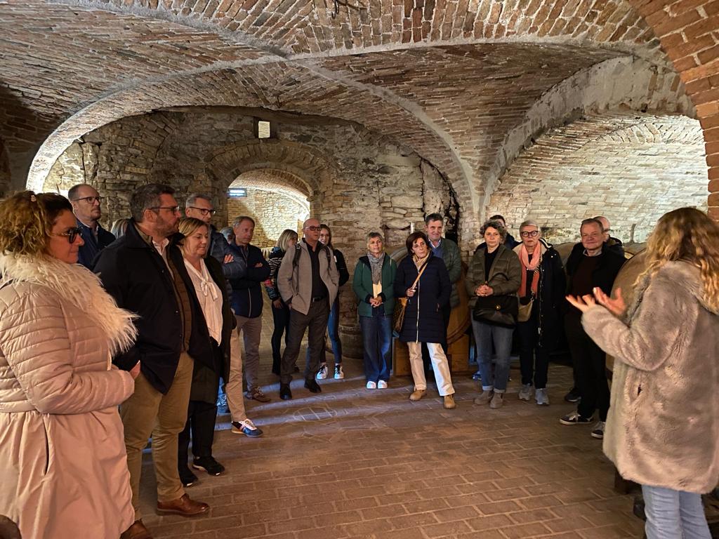 Nach dem Frühstück starten wir um halb 9 nach Castiglione Falletto und besichtigen dort die Cantine Terre di Barolo. Es ist dies eine der wenigen Kellereigenossenschaft im Piemont mit ca. 300 Mitgliedern. Wir befinden uns mitten im Unesco Weltkulturerbe der Weinlandschaft delle Langhe. Seit 2017 wird eine biologische Linie gefahren. 2020 wurde die Kellereigenossenschaft erweitert und ein modernes Besucherzentrum aufgebaut. Wir werden 5 typische Weine verkosten, darunter natürlich auch einige außergewöhnliche Barolo. Lest hierzu einige interessante Infos, damit ihr Euch in der Welt des Barolo gut zurecht findet.