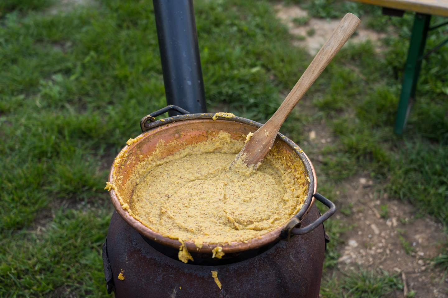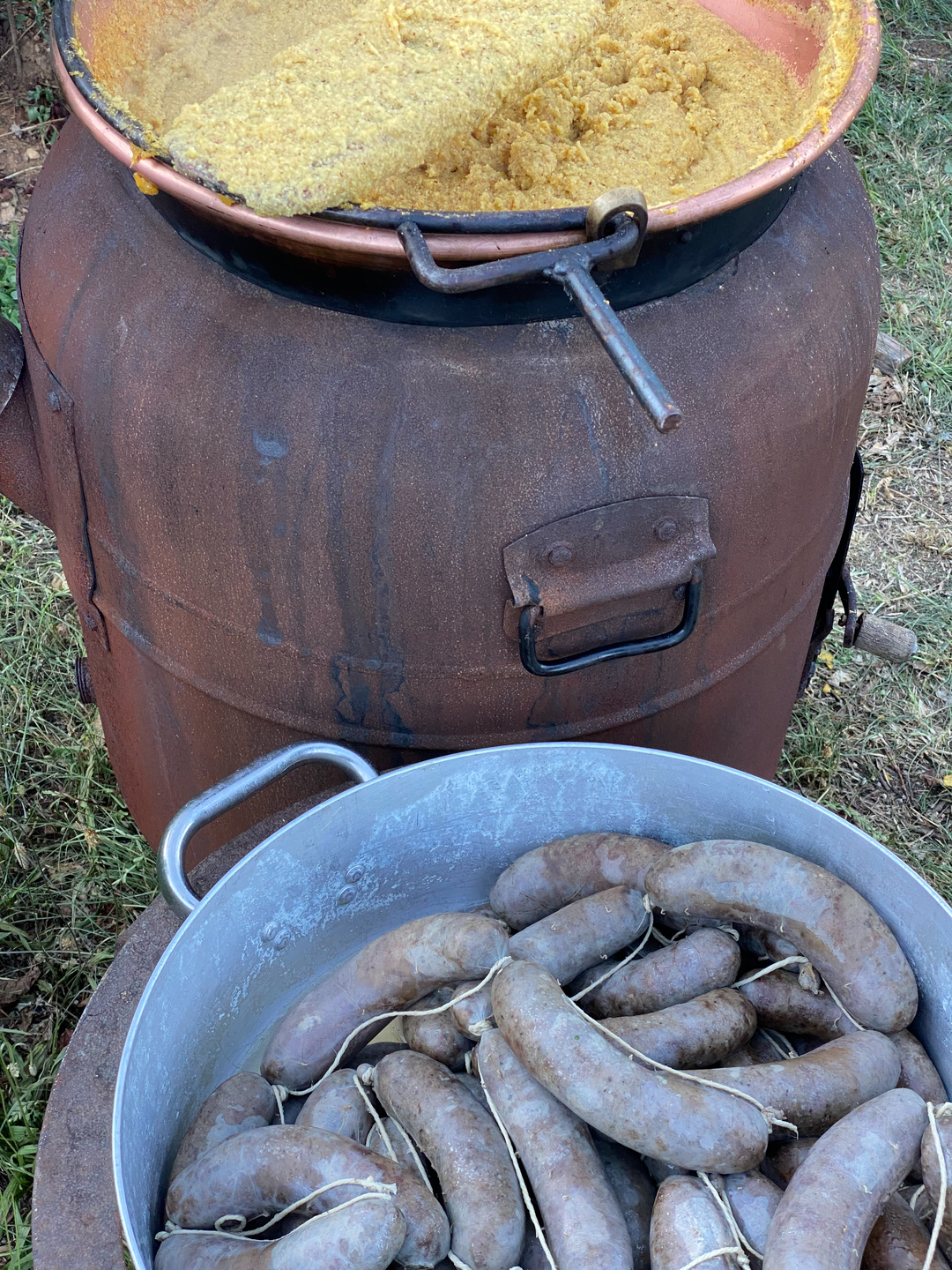 2 Kessel mit Plent und Würste für die Mitglieder des viva Vinus Weinclub Kaltern beim Mitgliederfest in Barleit