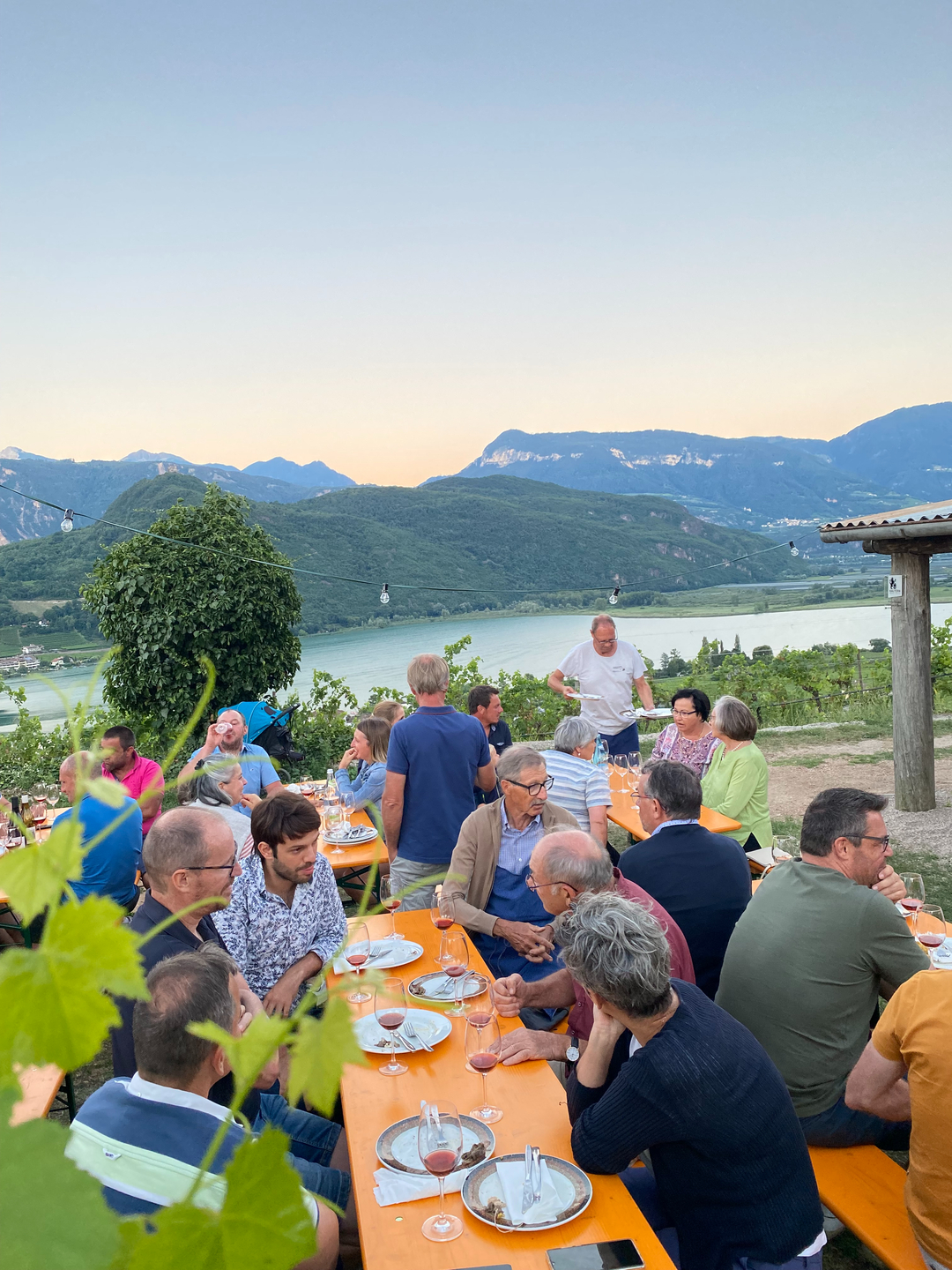 Wunderbarer Blick von Barleit auf den Kalterer See beim viva Vinus Weinclub Kaltern Mitgliederfest.