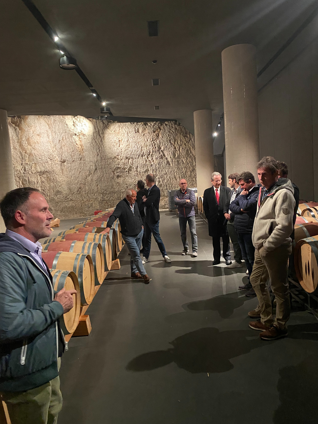 Der Barriquekeller an den natürlichen Dolomitfelsen angepasst und integriert